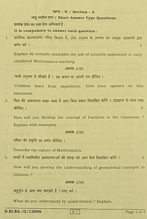 S7 गणित का शिक्षणशास्त्र – 2 PREVIOUS YEAR QUESTION PAPER