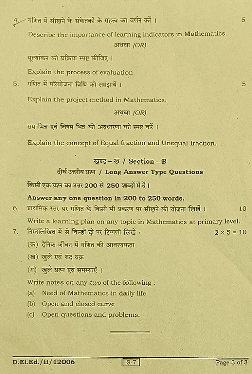 Bihar D.El.Ed 2nd year s7 previous year question paper