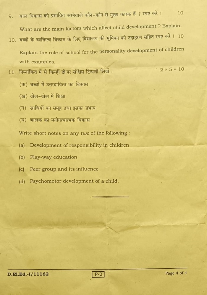 BIHAR D.El.Ed 1ST YEAR F2 बचपन और बाल विकास pdf Previous Year Question Paper