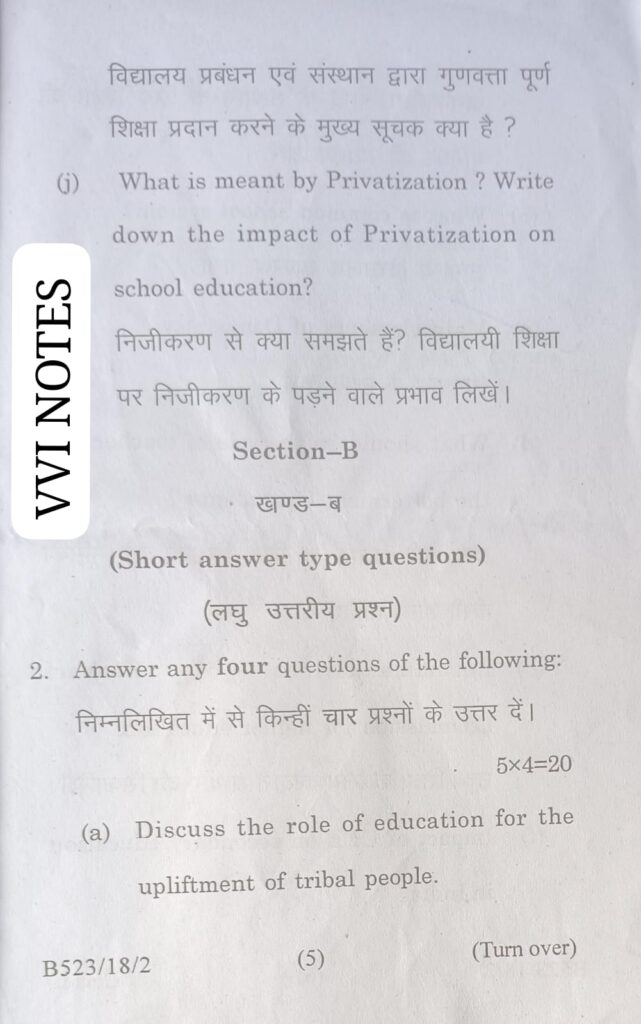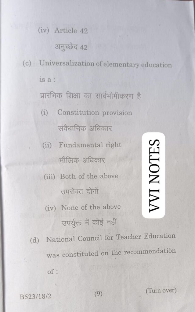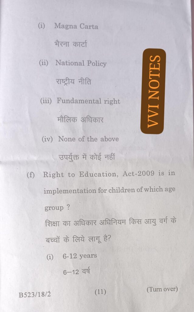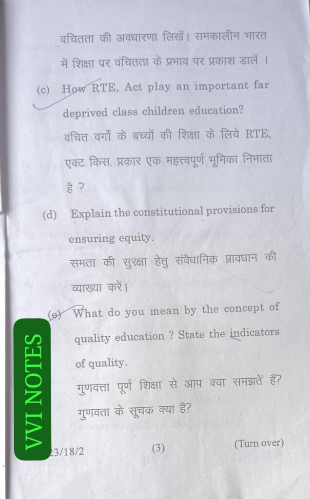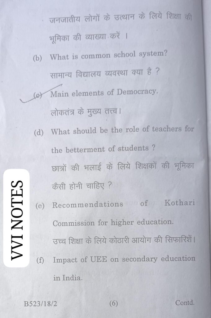 VVI NOTES के इस पेज में Magadh University B.Ed 1st Year Paper -1 Contemporary India and Education Previous question Paper with solution को शामिल किया गया है |