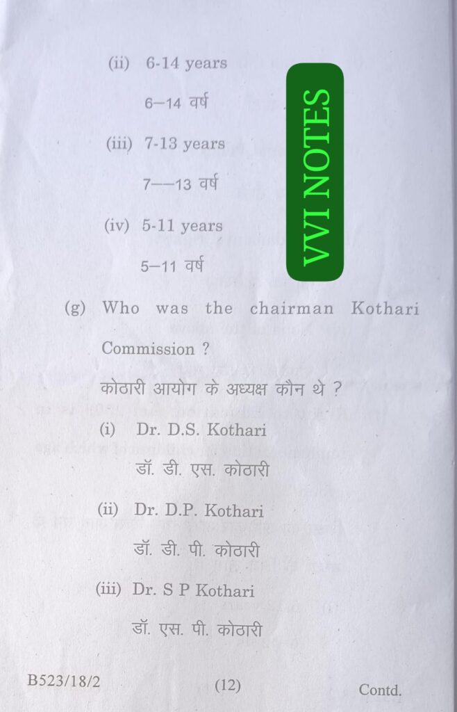 (g) Who was the the chairman Kothari Commission ?