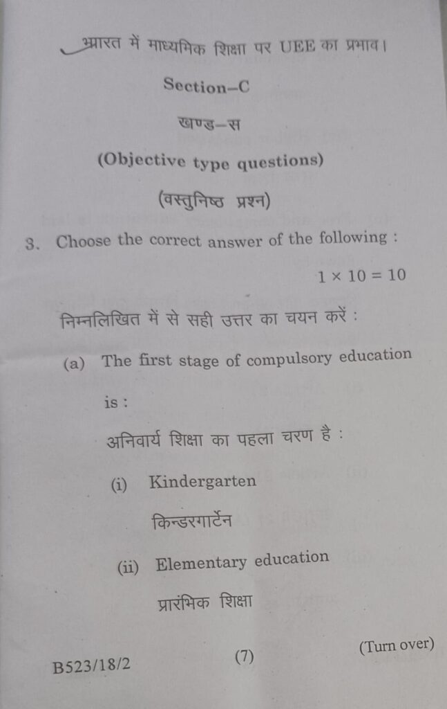 B.Ed 1st Year Contemporary India and Education Previous question Paper with solution