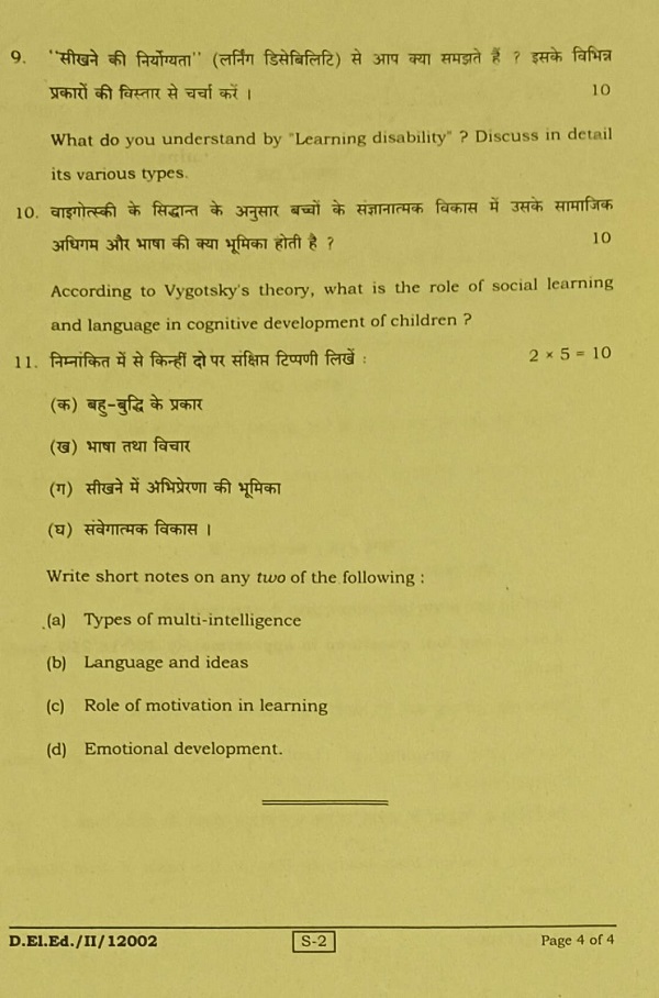 BIHAR D.El.Ed 2ND YEAR PREVIOUS YEAR QUESTION PAPER