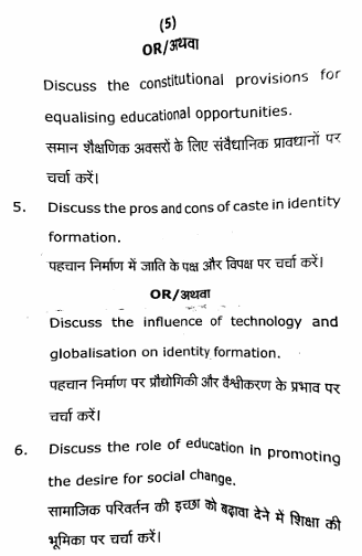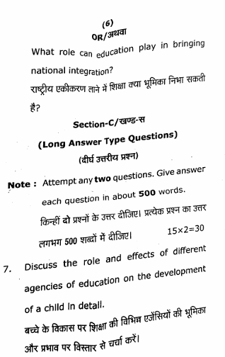 VBSPU B.Ed 1ST SEMESTER QUESTION PAPER