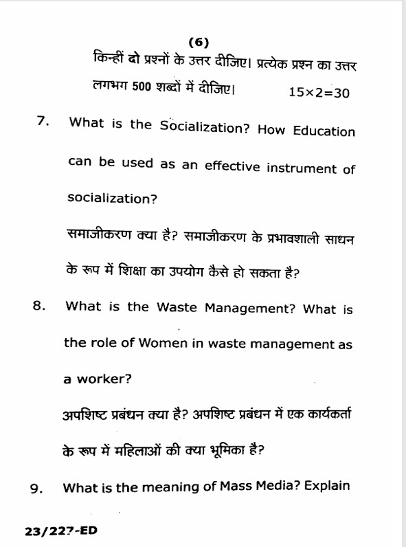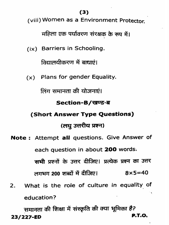 VBSPU B.Ed 3rd SEMESTER CREATING INCLUSIVE EDUCATION 2023 PREVIOUS YEAR QUESTION PAPER